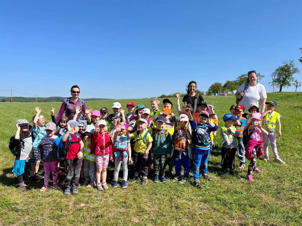 Výšlap na Stanoviska, kde jsme se potkali s dětmi z MŠ Všechovice.